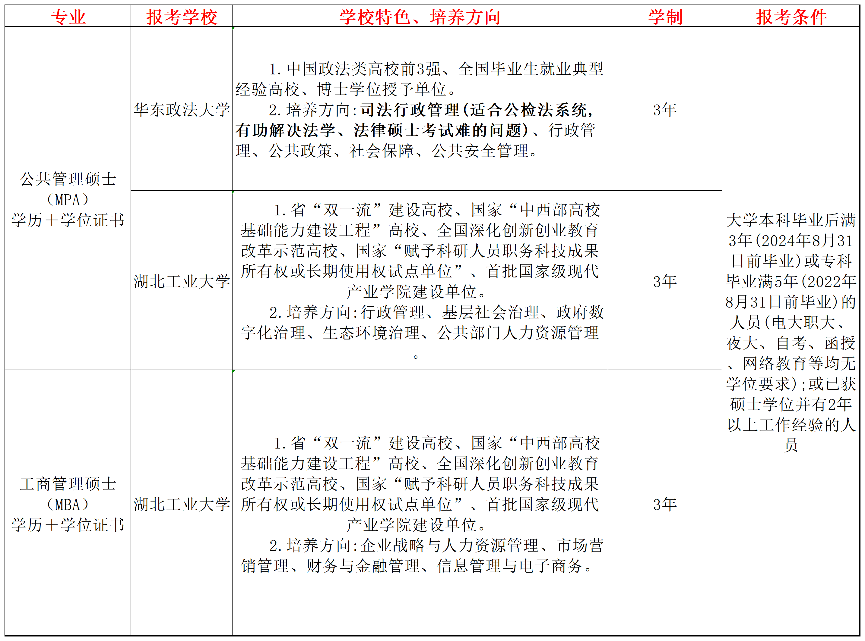▲华东政法大学、湖北工业大学(MPA、MBA)